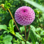 Dahlia 'Frank Holmes' is small in size but grand in appearance. Its flowers are perfectly round, only about 5 cm across, and have a soft lavender-pink color. The result is a playful pompom that dances in the garden on long, slender stems. Its attractive, smaller flower shape makes it stand out among the larger dahlias and also makes it long-lasting in a vase.