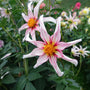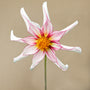 Dahlia 'Honka Fragile' is one of my favorite dahlias; it shines like a star in your garden. Its subtle and simple design makes it so beautiful. Its narrow white petals are gently folded and edged with a soft pink. At its heart, a golden yellow bloom bursts with nectar, attracting a buzz of bumblebees and honeybees. A valuable and elegant addition to your garden.