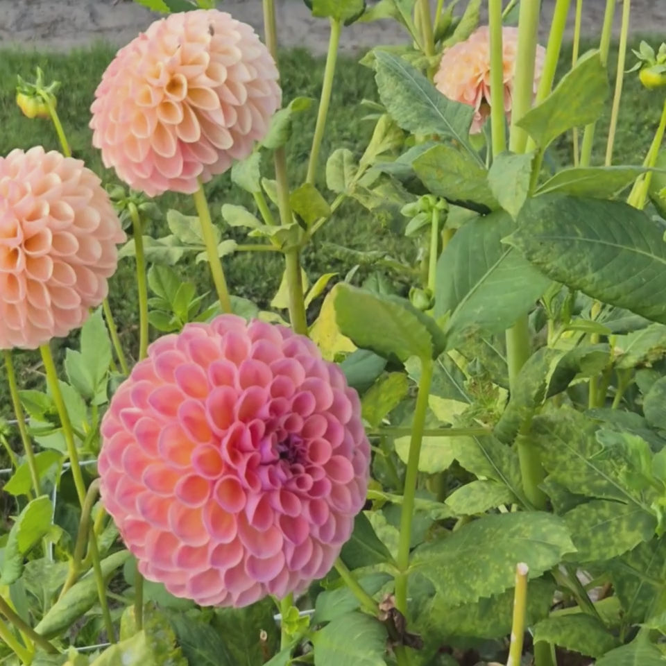 Dahlia 'LATE' is a small ball dahlia (or a large pompom, whatever you like to call it) that instantly adds a warm glow to your garden. Its flowers are perfectly round and composed of tightly rolled petals. The color starts out fresh and bright in peach and pink, but softens as the flower ages. With a hint of raspberry and the occasional touch of yellow, each flower seems like a different version. It's precisely this variation that makes it so delightful and surprising.