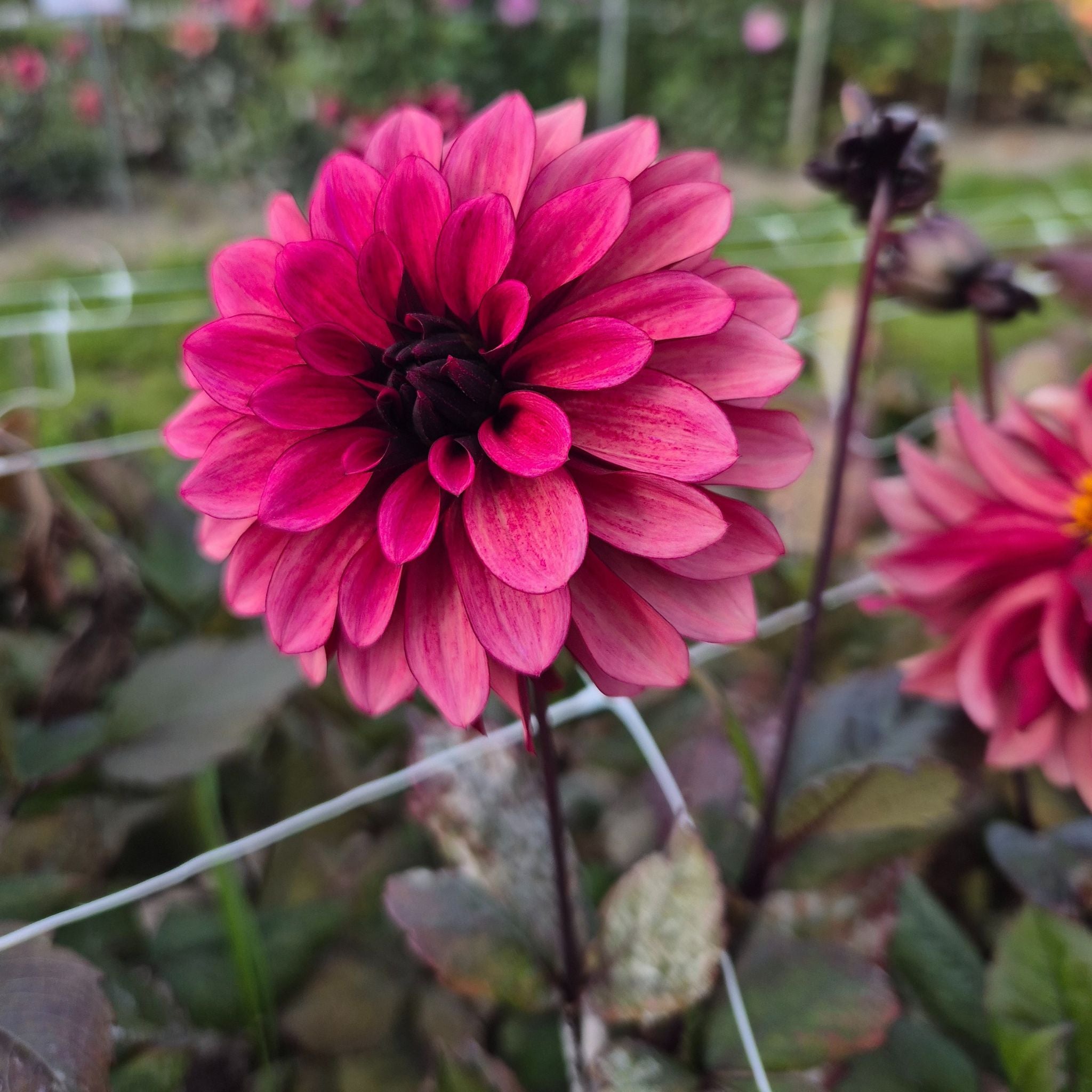 Dahlia 'Night Silence' – deep berry tones with dark leaves