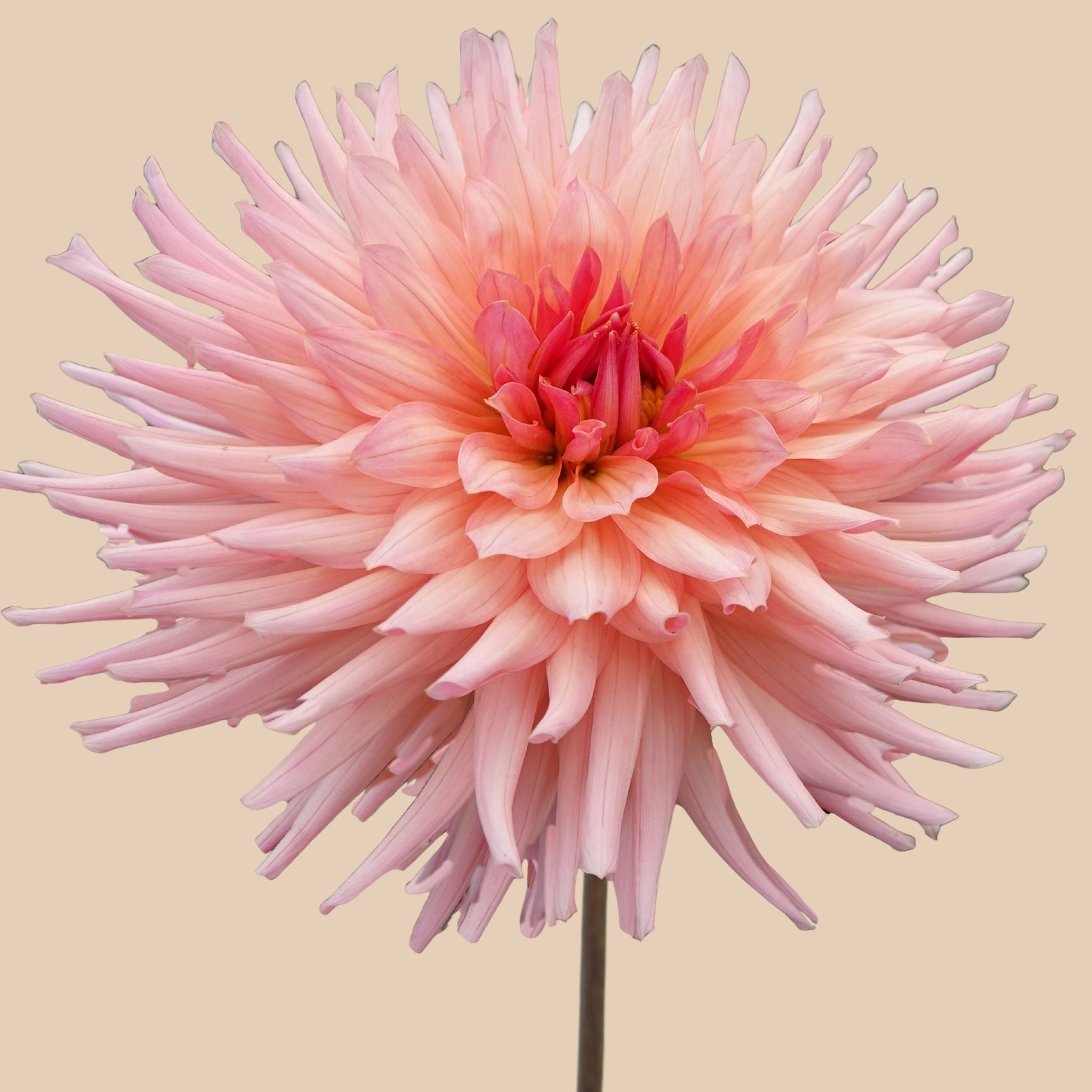 Dahlia 'Preference' – a cactus dahlia in soft peachy pink tones