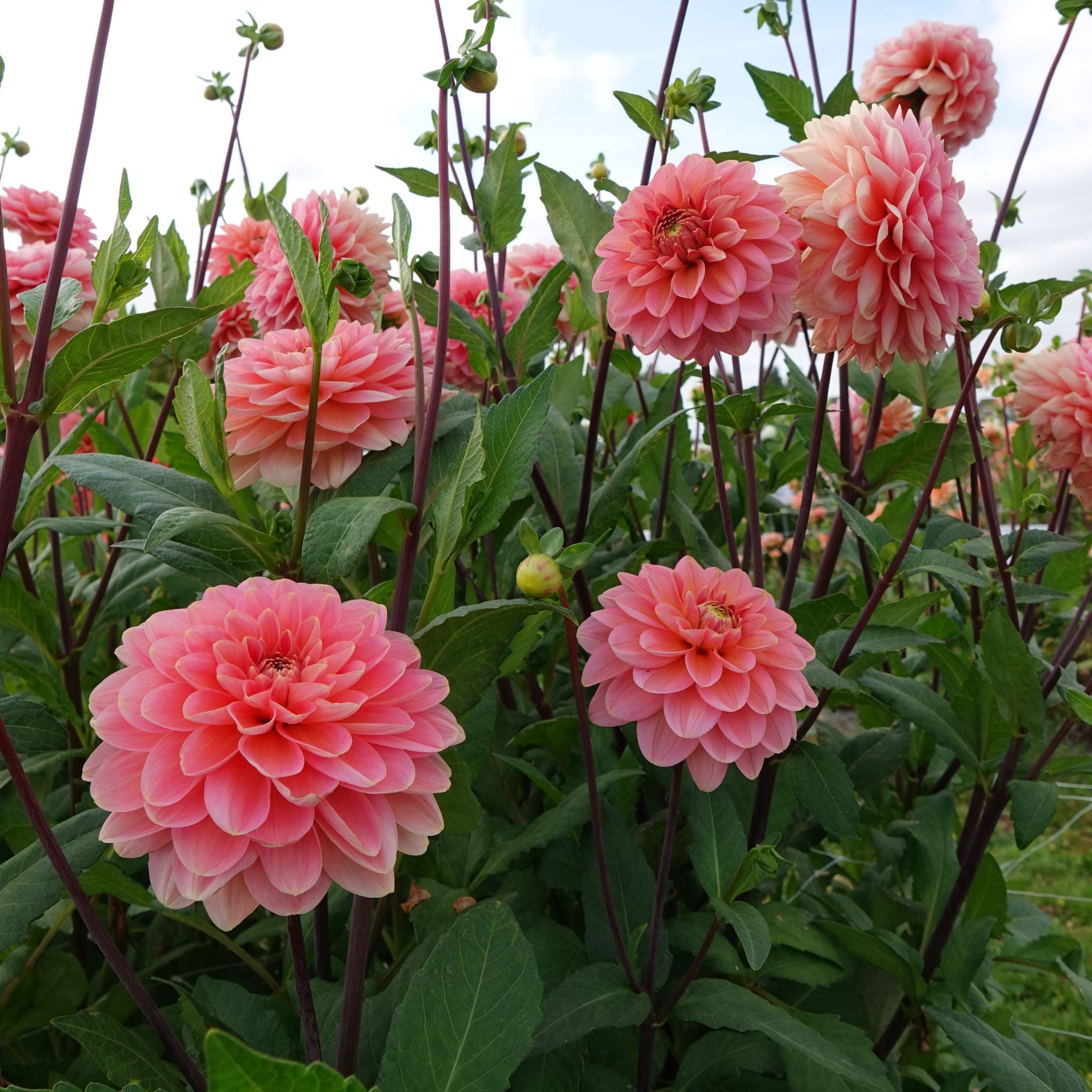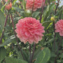 I added Dahlia 'Rosario' to my dahlia collection for its beautiful soft hues, but especially for its unique flower shape. The petals are slightly pointed and point upwards, giving the flower a resemblance to a lovely, double peony. The soft salmon pink color has a subtle apricot glow as it opens. The flowers are 12cm in diameter and are held aloft on sturdy, long stems.