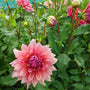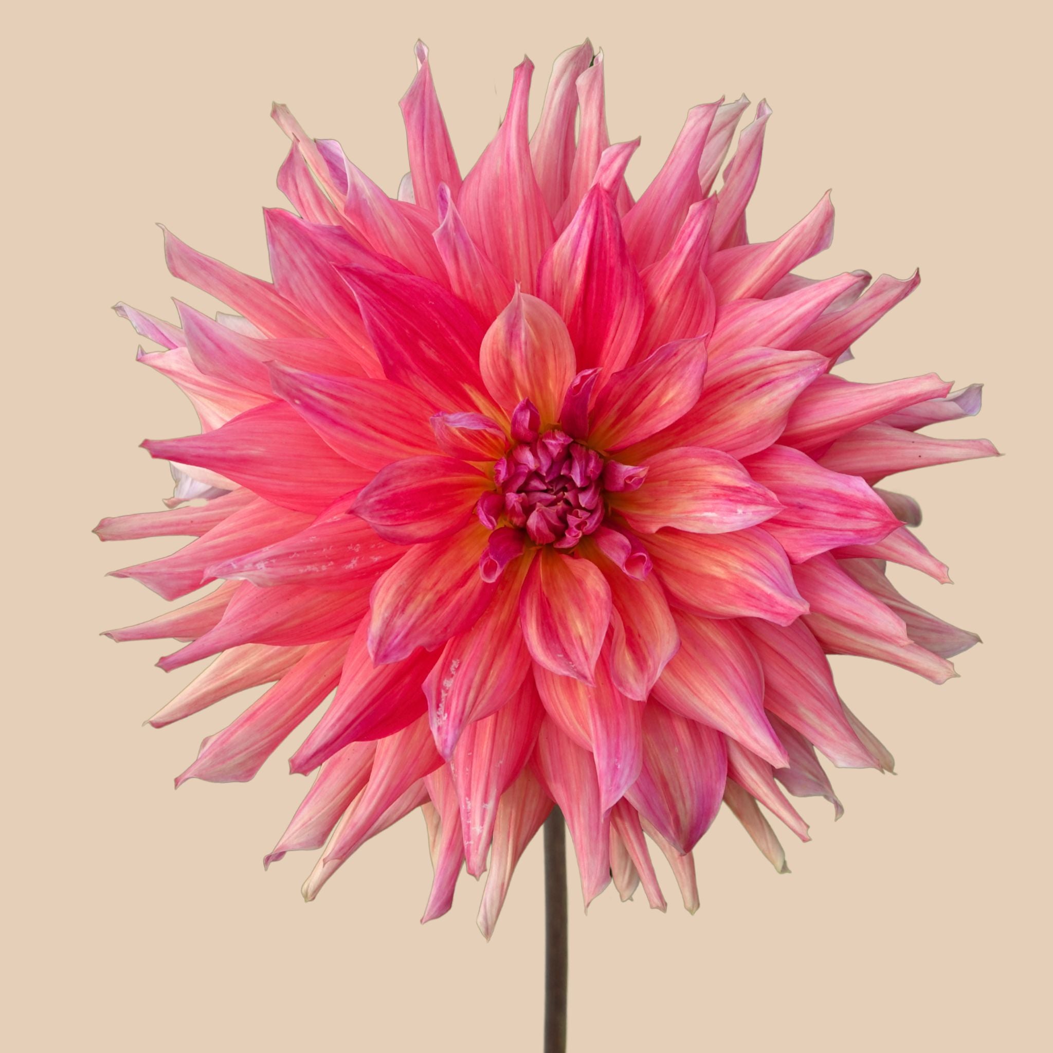 De gedraaide bloemblaadjes zorgen voor een bijzondere bloemvorm die nergens mee te vergelijken is. In combinatie met het zachte kleurverloop van perzikroze naar koraal-frambozenrood en de lange, stevige bloemstelen is dit een van de meest opvallende dinner-plate dahlia’s. Perfect voor wie op zoek is naar drama in de border en grootsheid in boeketten, maar ook naar een bloem die de hele zomer blijft verrassen.
