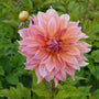 Dahlia ‘Fairway Spur’ valt direct op door haar formaat en kleur. De bloemen kunnen wel 25 cm groot worden en bestaan uit een mix van brons, zalmroze en perzik. De bloemblaadjes hebben een zachte, volle vorm en lijken bijna te gloeien in het zonlicht. Een dahlia die net zoveel indruk maakt in de tuin als in de vaas en een leuke basis vormt om met andere dahlia’s te combineren.
