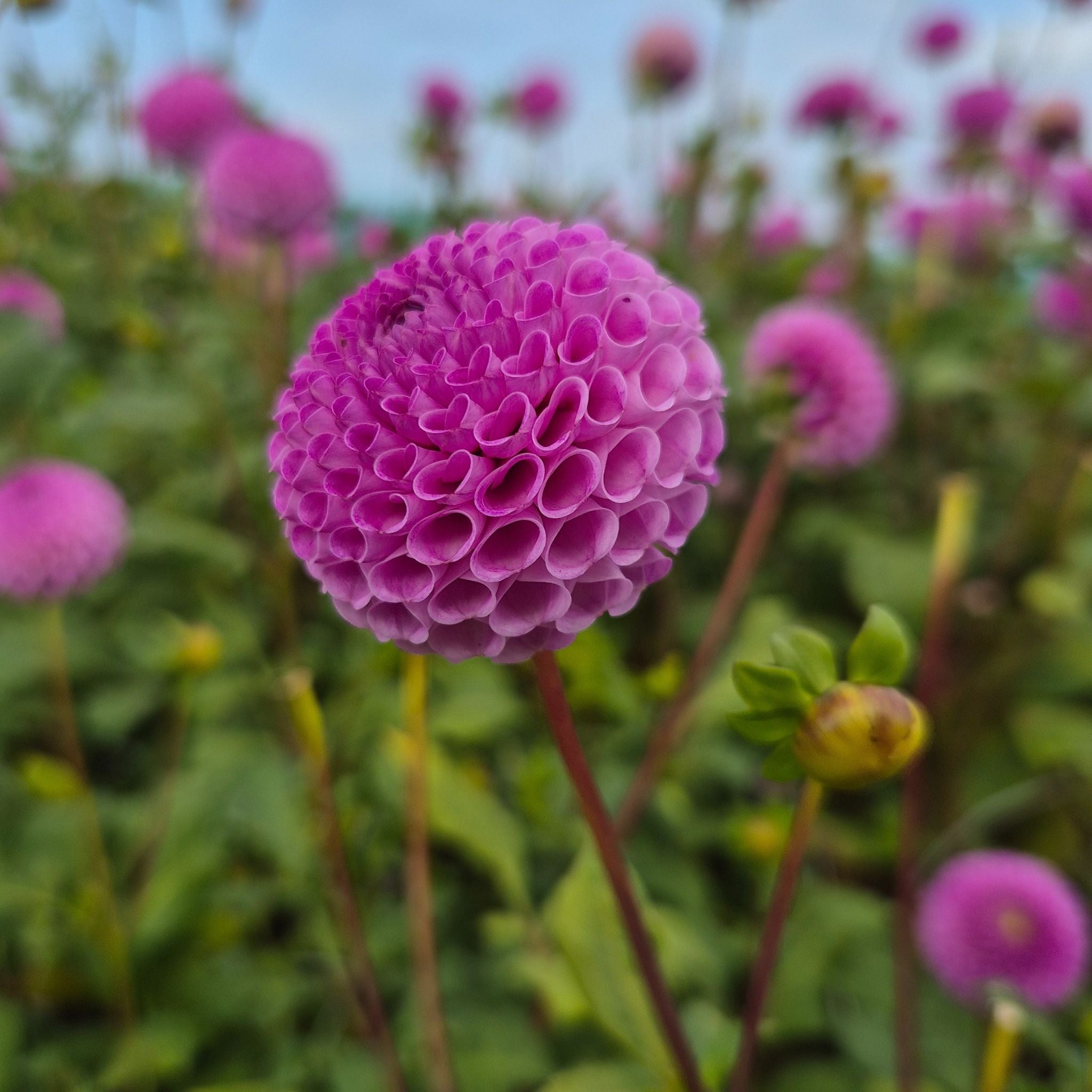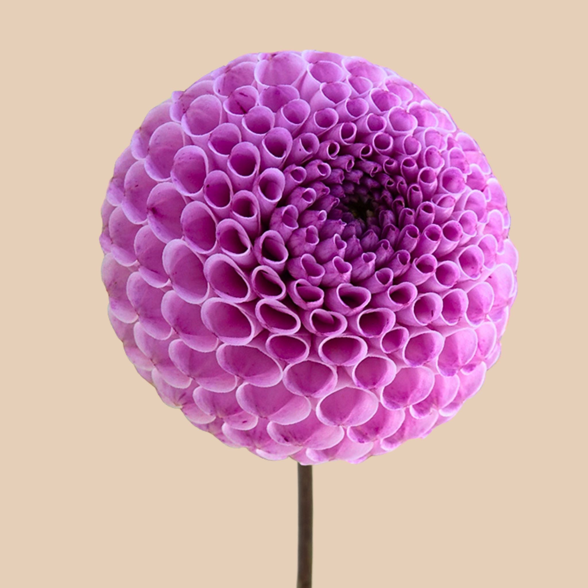 Dahlia ‘Frank Holmes’– kleine symmetrische pompons in een zachte lila kleur