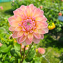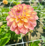 Dahlia ‘Hapet Pastel’ is een bal vormige dahlia met fijne zachte pastelkleurige tinten. Haar bloemen zijn rond en compact, met een diameter van zo’n 12 cm, een worden hooggehouden op stevige lange bloemstelen. Het zachte kleurenpalet van perzikroze en zacht botergeel geven haar een dromerige uitstraling en maakt het een leuke basis om met andere pastelkleurige dahlia’s te combineren.