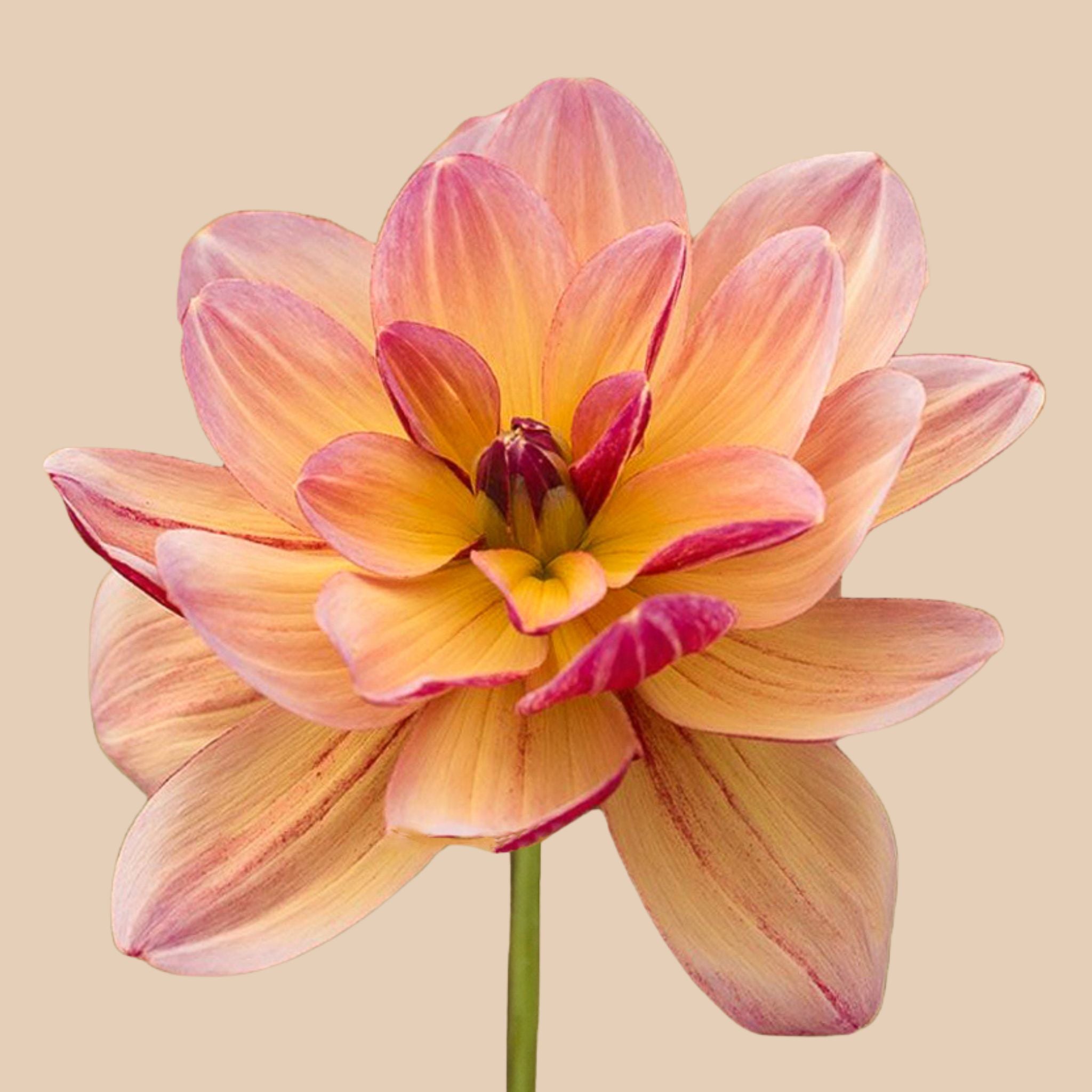 Dahlia ‘Happy Butterfly’ is een unieke en speelse toevoeging aan je zomertuin. De vlindervormige bloemen hebben een heldere botergele kleur met roze strepen die overgaan in paarsrode accenten. Elke bloem is anders en dat maakt haar een uniek kunstwerk!