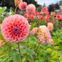 Door haar zachte perziktinten is ze eindeloos te combineren met andere kleurtinten. De kleine perfecte ronde bloemen geven een luchtige en speelse uitstraling in combinatie met andere dahliabloemen die vaak groter zijn van formaat.