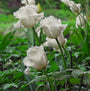 Honey Moon Tulpe, eine strahlend weiße, gefranste Tulpe mit kräftigen Stielen von ca. 50 cm Höhe. Die Blütenpracht beginnt erst richtig, wenn die schneeweißen Blüten Knospen bilden; die gefransten Ränder sind deutlich zu erkennen. Ab 20 Stück: 8,00 € pro Packung.