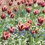 Die Muvota-Tulpe hat tief weinrote Blütenblätter, die zu einem kupferfarbenen Rand verblassen. Mit zunehmender Reife der Blüte verändert sich die Farbe zu einem dunkleren Purpurrot mit zartrosa Rand. Ab 20 Stück: 6,50 € pro Packung