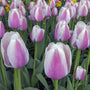 Die Tulpe Ollioules wird wegen ihrer langen Blütezeit, ihres mehrjährigen Charakters und ihrer riesigen Blüten sehr geschätzt. Eine sanfte Farbkombination aus zartem Rosa mit einem Hauch von Lila und kräftigen, langen, frischgrünen Blütenstielen. Ab 20 Stück: 6,50 € pro Packung.