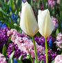 Die Purissima-Tulpe ist meiner Meinung nach die schönste weiße Tulpe und erfreut sich deshalb seit 1943 großer Beliebtheit. Sie ist eine kräftige, frühblühende Sorte, die Jahr für Jahr den Garten schmückt. Die leuchtend weißen Blütenblätter haben eine cremegelbe Basis, was ihr ein zeitloses Aussehen verleiht. Ab 20 Stück: 6,50 € pro Packung